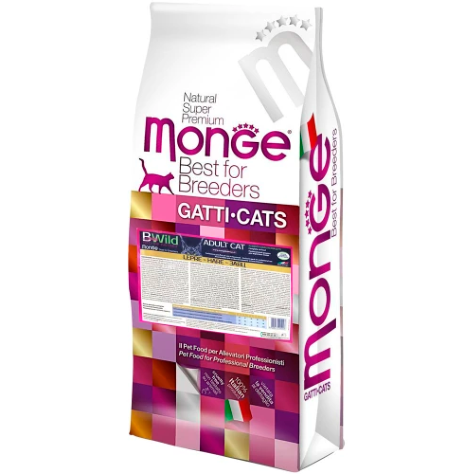 Сухой низкозерновой корм Monge Cat Be Wild Low Grain для кошек, с мясом зайца, 10 кг. Корм для взрослых кошек всех пород, обогащенный мясом зайца. Сбалансированный рацион, придавший особый вкус и аромат мяса зайца благодаря высококачественным ингредиентам.
