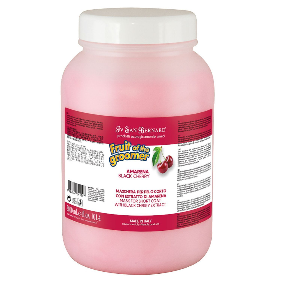 Описание Маска восстанавливающая для короткой шерсти Iv San Bernard Fruit of the Groomer Black Cherry с протеинами шелка 3 л