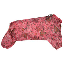 Комбинезон удобно садится по фигуре питомца и не стесняет его движений при прогулке. Изделие надежно фиксируется при помощи молнии на спине, для удобства надевания на шее есть пуговица, а на штанинах предусмотрены удобные резинки, препятствующие попаданию грязи и влаги снизу.
