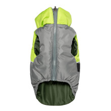Жилетка имеет специальную молнию с перекедным бегунком, застегивающуюся на обе стороны, светоотражающий элемент, а также специальные вставки из резинок, что позволяет изделию плотно сидеть на собаке.