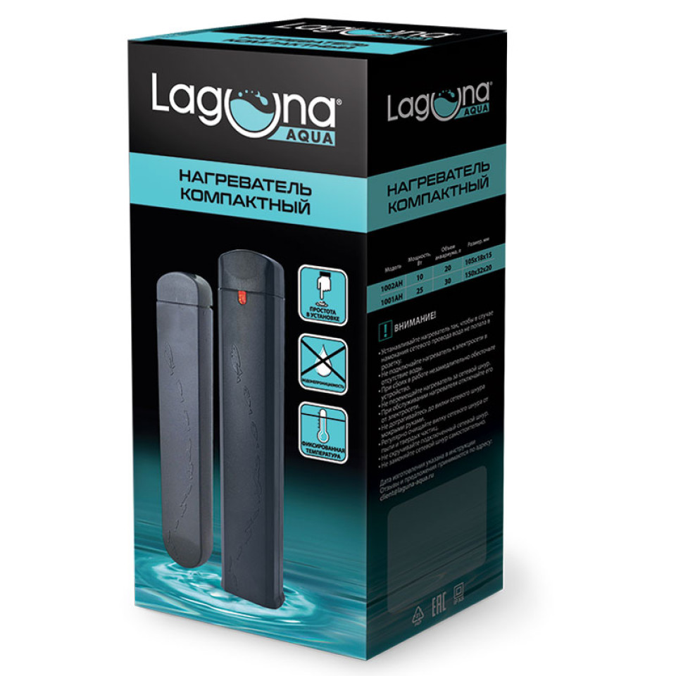 Основные характеристики Нагреватель 1002AH компактті, пластиктен жасалған, 10Вт, 15л-ке дейін, 18*15*105, Лагуна